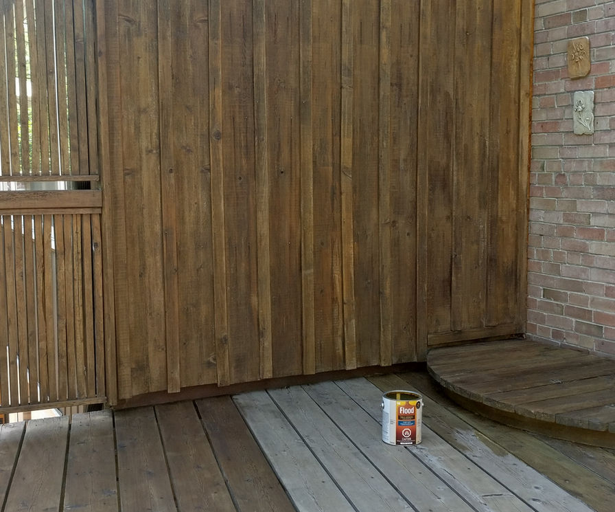 Exterior painting and deck sealing of a home in the Riverdale-Danforth neighbourood. The house was 2 storeys and there were many hills and slopes making ladder placements very difficult