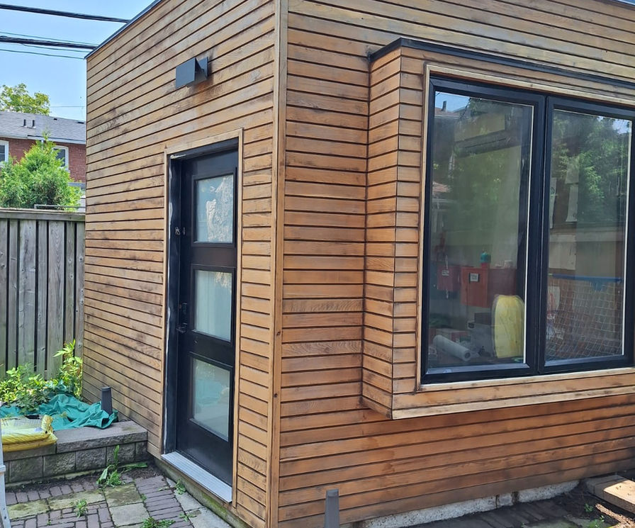 An old shed in Bloor West was thoroughly sanded, primed and repainted to provide it with new life and protection